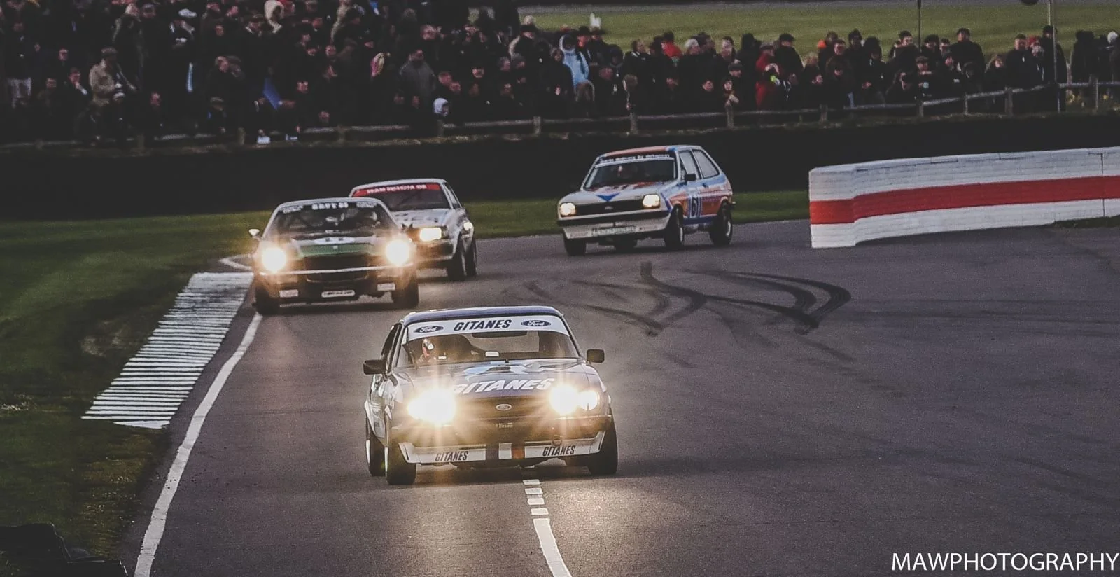 The Mk.3 Ford Capri’s were famously raced by Gordon Spice in the British Saloon Car Championship. Our Group 1 Mk.3 Capri has been raced by Ric, BTCC driver Adam Morgan, Ex Le Mans driver Nicolas Minassian and of course BTCC star Jake Hill who as pedalled the Gitanes Capri to two breath-taking victories at the Goodwood Members Meeting among other top performances. You can see one of our Mk.3 Capri’s in action below.